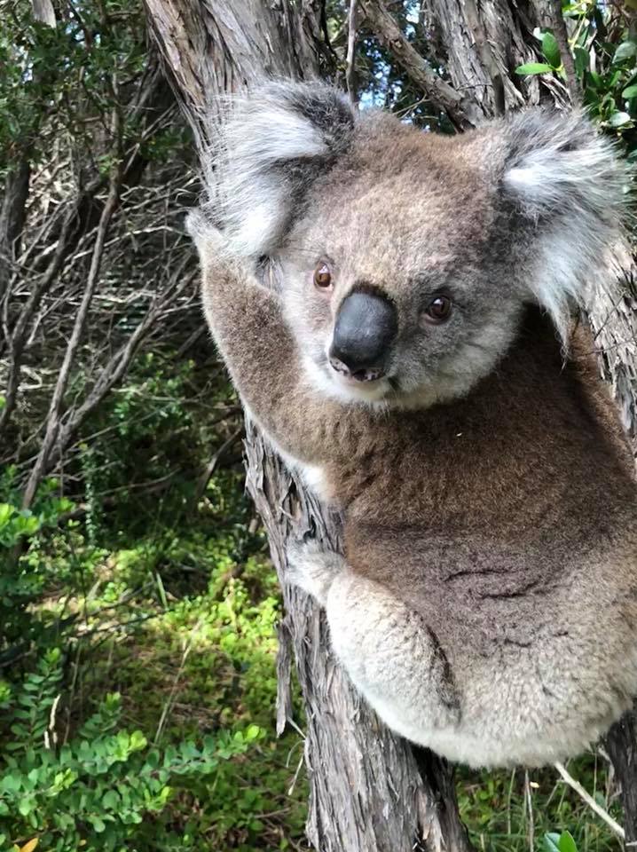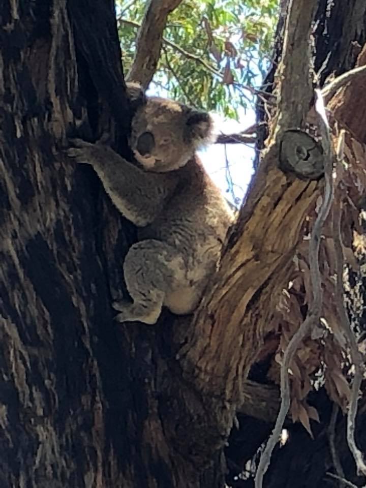 Von Melbourne aus sind wir die Great Ocean Road gefahren, weil da besonders viele Koalas sein sollten. Stimmte auch. Wenn man ersteinmal den Blick geschärft hat, sind sie schnell zu sehen. Und wenn man lang genug wartet, schlendern sie auch mal an der Straße lang….